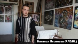 – И коридор, – добавляет художник. – Тут же не только мои работы, а места мало. Приходят люди, смотрят, мы выставки проводим. Немного, конечно, – человек 150 на миллионный Омск. Художники, студенты в основном. Не за раз, но лица всегда одни и те же. Покупают не омичи, конечно, у кого в Омске деньги есть? Москвичи, реже – питерцы. После того как мне штраф за экстремизм дали, новые какие-то клиенты появились. Это же игра такая. Можно не уметь рисовать, главное – уметь мистифицировать. Говоришь, что ты художник, и все верят, приходят интервью брать. Но я искренне играю.