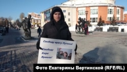 Сторонники оппозиционера Алексея Навального 4 февраля провели в центре Иркутска семь одиночных пикетов в поддержку своих единомышленников, задержанных за участие в "Забастовке избирателей". На плакатах были имена Руслана Шаведдинова, Дмитрия Низовцева, Николая Ляскина, Киры Ярмыш.