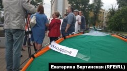Переселенцы из зоны затопления Богучанской ГЭС, проживающие в Иркутском районе Приангарья, 21 июня вышли на митинг. Акция протеста проходит в центре Иркутска недалеко от областного правительства. Семеро участников требуют от властей выделить обещанные им земельные участки, которые необходимы для выращивания овощей. Они установили палатку, на которой наклеили слово "голодовка". Говорят, что если власти их не услышат, то они готовы пойти на крайнюю меру и отказаться от приема пищи в знак протеста.