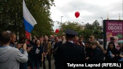 Шествие остановилось возле краевого суда и повернуло обратно. Корреспондент "Сибирь.Реалий" следит за ситуацией.