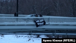 Омск: на мосту вывесили баннер в поддержку "Летов-аэропорта"