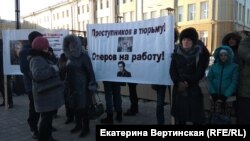 За час до начала заседания родственники и друзья подсудимых провели пикет на площади перед зданием цирка, примерно в двухстах метрах от здания суда. Они держали плакаты с надписями: "Преступников в тюрьму! Оперов на работу!", "Дайте профессионалам работать! Не порочьте честь офицеров!".