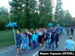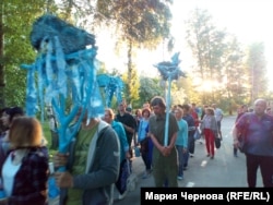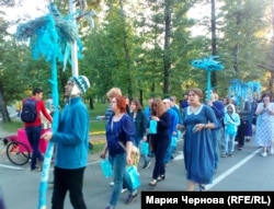 В выходной день в центре Иркутска состоялось перформанс-шествие под названием "Синий лес". Его устроили театр-студия "О!", где занимаются дети и взрослые с особенностями развития, и участники общественной организации родителей детей с ограниченными возможностями "Радуга".