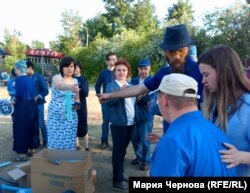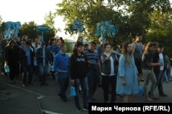 Основной целью шествия "в синем цвете" создатели театра называют желание рассказать жителям Иркутска про "людей, которые живут в нашем городе, гуляют по улицам, смеются, любят, никогда не взрослеют".