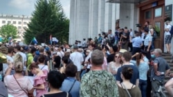К вечеру часть участников осталась митинговать у мэрии Хабаровска. Часть собравшихся обещает не расходиться с места до утра.