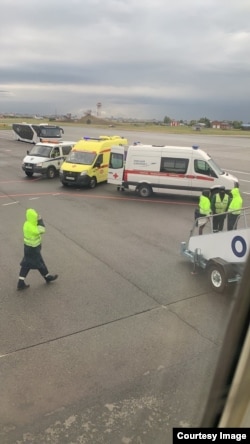 – Нет, журналистов не было. Нам сказали оставаться на своих местах. Зашли двое человек в полицейской форме и двое в штатском. У них были пакетики, они походили по самолету, подошли к 11-му ряду, где он сидел, там уже сидели другие люди. И они попросили остаться нескольких человек с той стороны, не знаю, сколько именно – тех, кто летел рядом с Навальным. Остальным сказали, что они могут быть свободны.