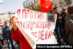 На сей раз классика звучала якобы в честь дня рождения Хабаровского края, который празднуется 20 октября. Но митингующие подготовились к этому "концерту": на площади поставили колонки, чтобы музыка не мешала слушать выступающих. На традиционное шествие около 12:30 вышло около 1500 человек.