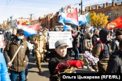 Между тем протестующие вышли колонной на традиционное шествие. "Путин вор", "Мы здесь власть", "Я/Мы Сергей Фургал", "Дегтярев – пошел вон", – скандировали в колонне. Их поддерживали не только водители проезжавших мимо машин, но и жители ближайших домов, выглядывающие из окон. Предупреждения сотрудников полиции, которые призывали прекратить несанкционированное мероприятие и покинуть проезжую часть, митингующие проигнорировали.