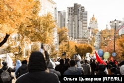 Галина имеет в виду историю, приключившуюся с журналистом Сергеем Плотниковым, которого в ночь на 16 октября неизвестные похитили и вывезли в лес. Сергей освещает протесты на ютьюб-канале RusNews. Он также пришел сегодня на акцию протеста. Сергей уверен, что похитили его силовики, но говорит, что его это не остановит.