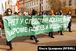 Между тем в шествии протестующие снова скандировали "Свободу", "Партию ЕдРо в помойное ведро", "Путина в отставку", "Свободу Фургалу", "У ОМОНА начались схватки, кладут народ на лопатки", "Нет у следствия доказательств, кроме побоев и издевательств".