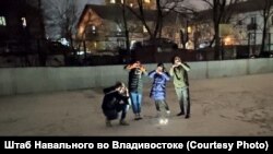 Жители Владивостока откликнулись - региональный штаб Навального публикует их фото в телеграме. Там же несколько жителей устроили хоровод вокруг елки.