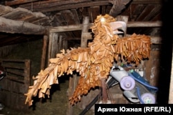 Сразу у входа во двор, на дощатой стене сарая, можно увидеть, как говорит сам Гришаев, "набор всякой ерунды"– висящие компьютерные клавиатуры, колонки от музыкальных центров, телефонная трубка…