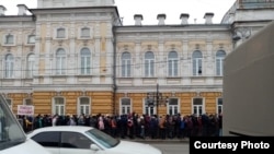 Жители Иркутска собрались напротив Серого дома, сообщает корреспондент Сибирь.Реалии. Несколько сотен человек скандируют: "Свободу Навальному", "Свободу России", "Свободу политзаключённым", "Путин вор", "Уходи". Полиция не пускает протестующих к Дому советов.