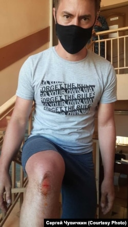 "Когда я переходил дорогу, на меня напали двое неизвестных. Я шел на похороны, попросил полицейских прислать повестку - мол, приду сам к ним. В ответ они применили силу: стали выкручивать руки, схватили, начали душить, усадили в машину, пристегнули наручниками", - сообщил Калиниченко. По его словам, один из полицейских был в штатском, второй - в камуфляже, оба не представились и не предъявили документы.Задержание снимал, по словам Калиниченко, на видео полицейский из центра "Э" Дмитрий Альберт.