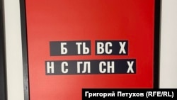 Выставка называется WORD WAR: Словесная война. В нижней части плаката мы видим "выпавшую" из слова word букву L. Если вернуть её на место, получится совсем другое название – Мировая война.