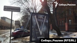 Зато на билбордах буквы Z и V повсеместно, как, впрочем, и цитаты Владимира Путина про войну. Причем на электронных рекламных щитах сразу после высказывания о войне идет ролик "Мир в единстве", а потом – призыв вступать в мобилизационный резерв.