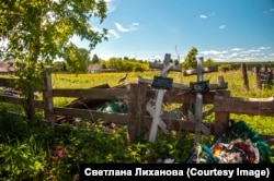 На кемеровском кладбище впервые в жизни увидела захоронение бездомных – яркое подтверждение всей бренности бытия. Роют траншеи, и их туда укладывают. Ставят простой деревянный крест с железным медальоном, на котором через несколько лет уже ничего не прочтёшь. Такая грусть меня охватила. Вот так живёт человек, живёт – а похоронить и некому. Был с собой фотоаппарат, под впечатлением сфотографировала сразу целую серию. Потом стала и в деревнях на погостах бывать. Ищу не конкретных людей, а что-то поэтическое – необычные памятники, древние текстуры, интересные образы.