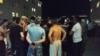 На видео с места, выложенном в социальных сетях, рабочие в спецовках закидывают офис камнями